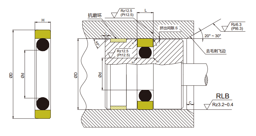 確保有很高的耐磨性。因單個密封件有雙向密封能力,故省去了安裝空間。