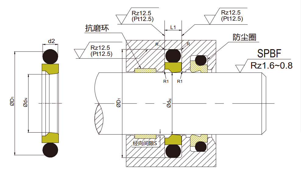 密封環(huán):填充聚四氟乙烯PTFE 或聚氨酯PU