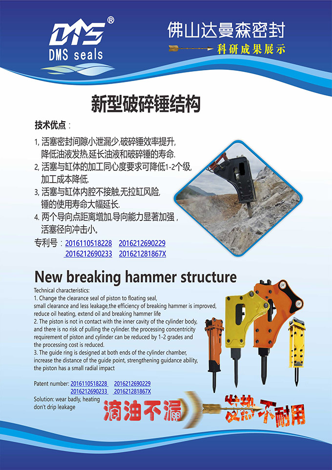1,活塞密封間隙小泄漏少,破碎錘效率提升,降低油液發(fā)熱,延長油液和破碎錘的壽命.
