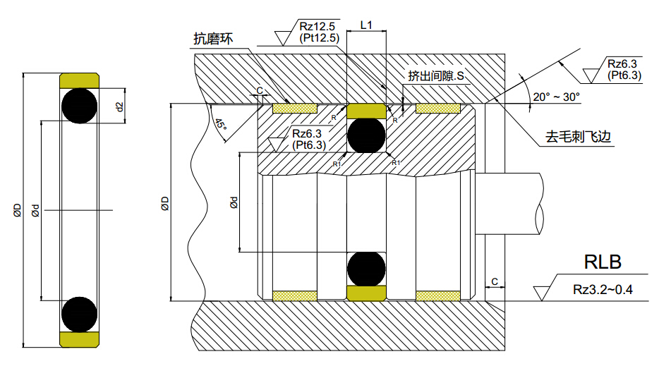 滑動(dòng)材料用填充聚四氟乙烯,此密封件具有很低的摩擦阻力,消除了爬行,