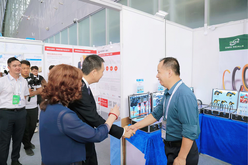 展會(huì)期間,達(dá)曼森密封公司董事長胡董親臨現(xiàn)場,與眾多國內(nèi)外同行商進(jìn)行深入交流。廣東省工業(yè)和信息化廳陳磊副廳長蒞臨我公司展位指導(dǎo)工作,展臺(tái)前人頭攢動(dòng),吸引了大量專業(yè)觀眾駐足咨詢,圍繞公司高性能各類管料產(chǎn)品的性能特點(diǎn)與應(yīng)用場景展開了熱烈探討,現(xiàn)場氣氛十分活躍;大家對(duì)耐超低溫和耐超高溫工況的密封件也非常感興趣,同時(shí)對(duì)達(dá)曼森對(duì)密封新材料的研究和投入都表示贊賞。
